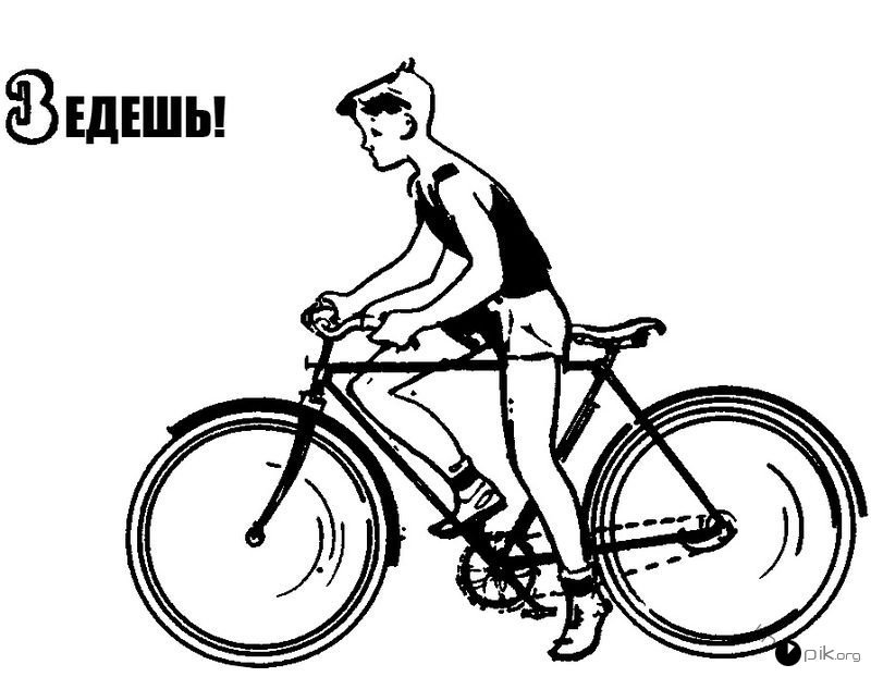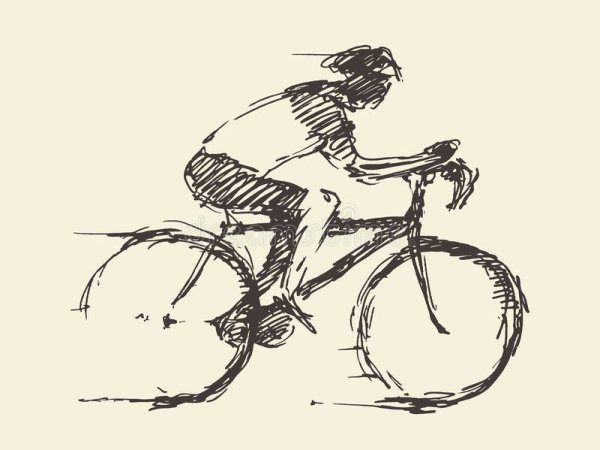 ![Рисунок карандашом велосипедиста на велосипеде]()