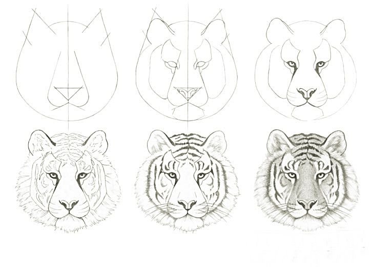 Рисунок тигра пошагово карандашом
