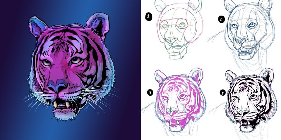 ![Рисунок тигра пошагово]()