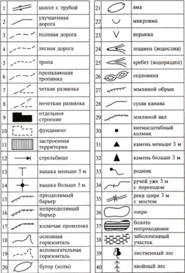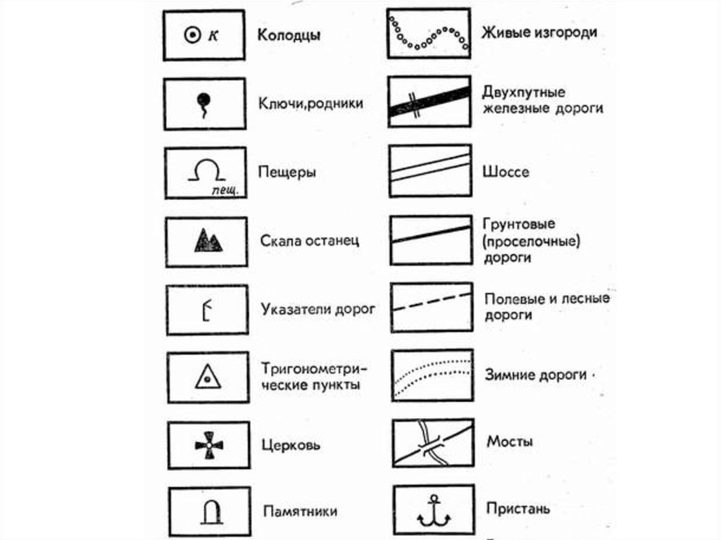 ![Условные обозначения на топографических картах]()