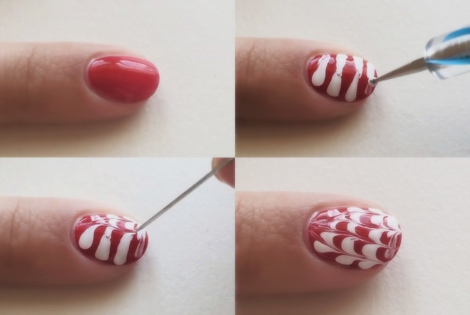 Простые узоры лаком на ногтях