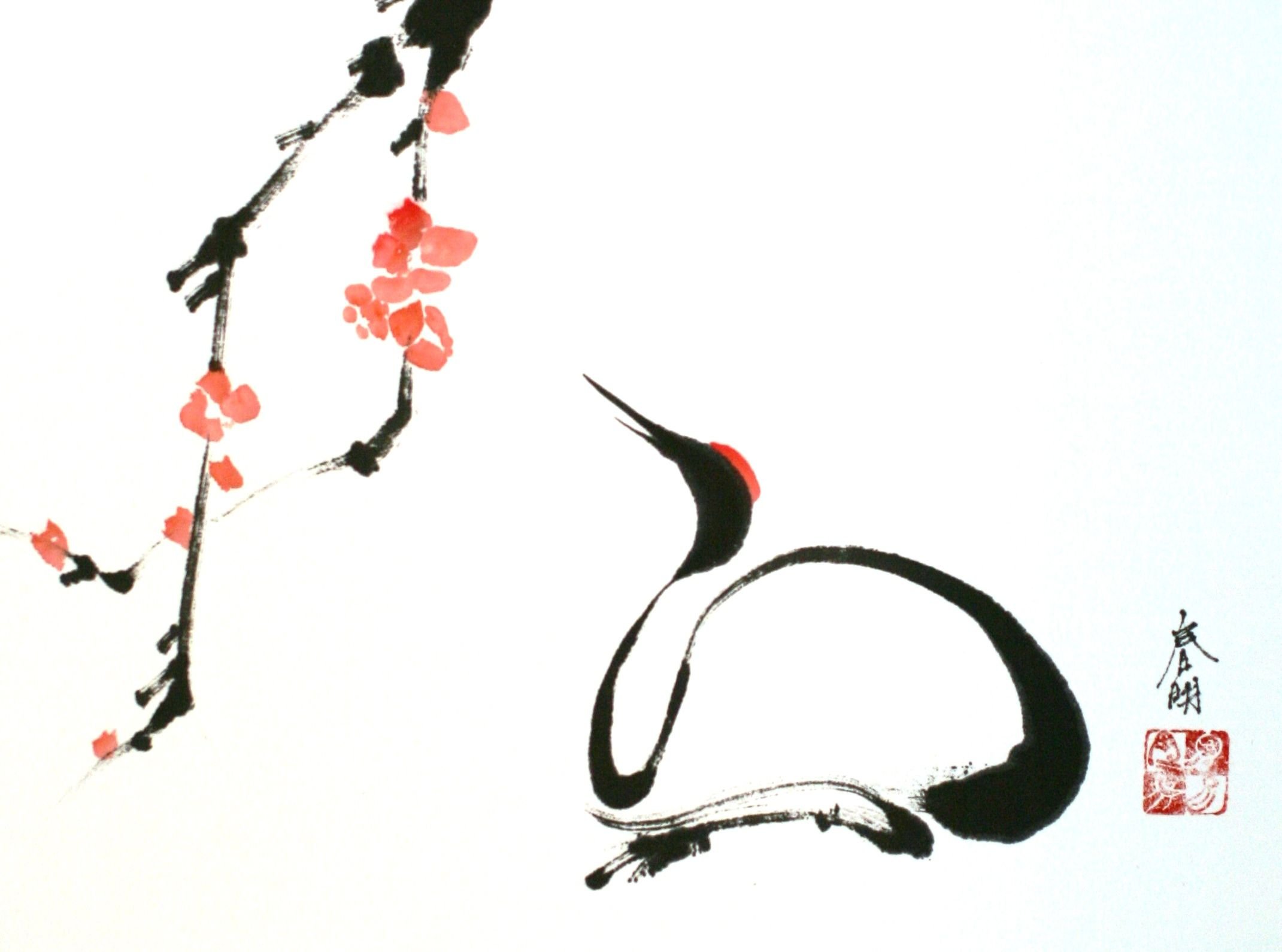 ![Японская живопись тушью в стиле суйбоку Рюкю Саито]()