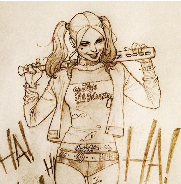 ![Рисунки для скетчбука Харли Квинн]()