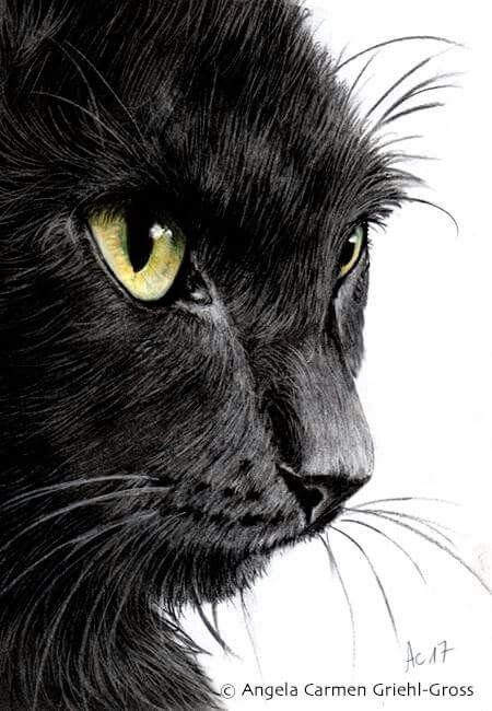 ![Черный кот рисунок карандашом]()