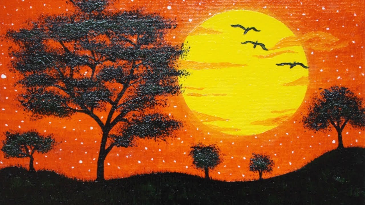 ![Закат рисунок красками]()