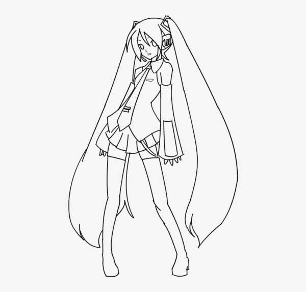 ![Хатсуне Мику в полный рост для срисовки]()