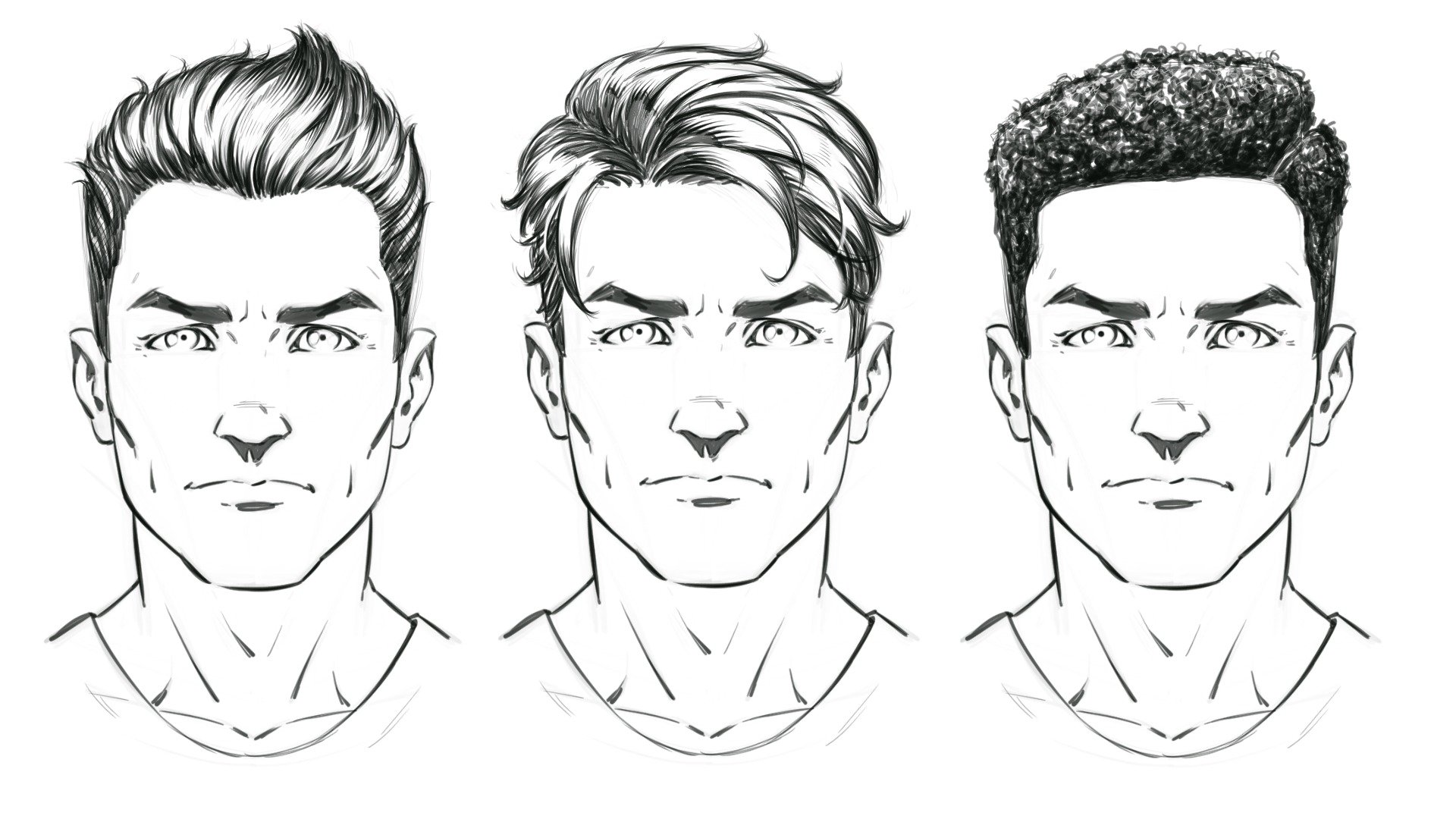 ![Мужские прически рисунок карандашом]()