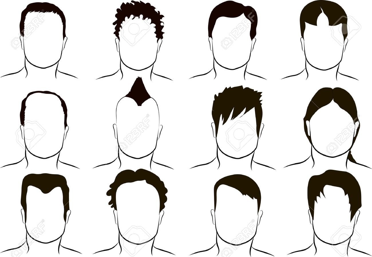 ![Эскиз мужской головы для стрижки]()