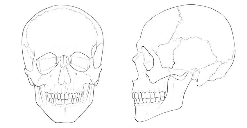 ![Череп человека профиль анфас пропорции]()