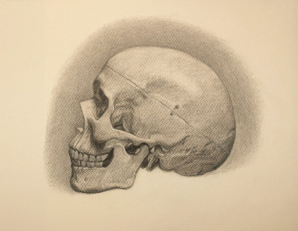 ![Череп сбоку рисунок карандашом]()