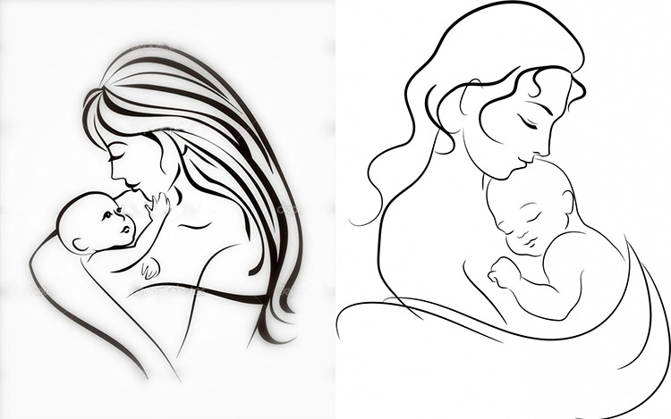 Контурное изображение матери и младенца