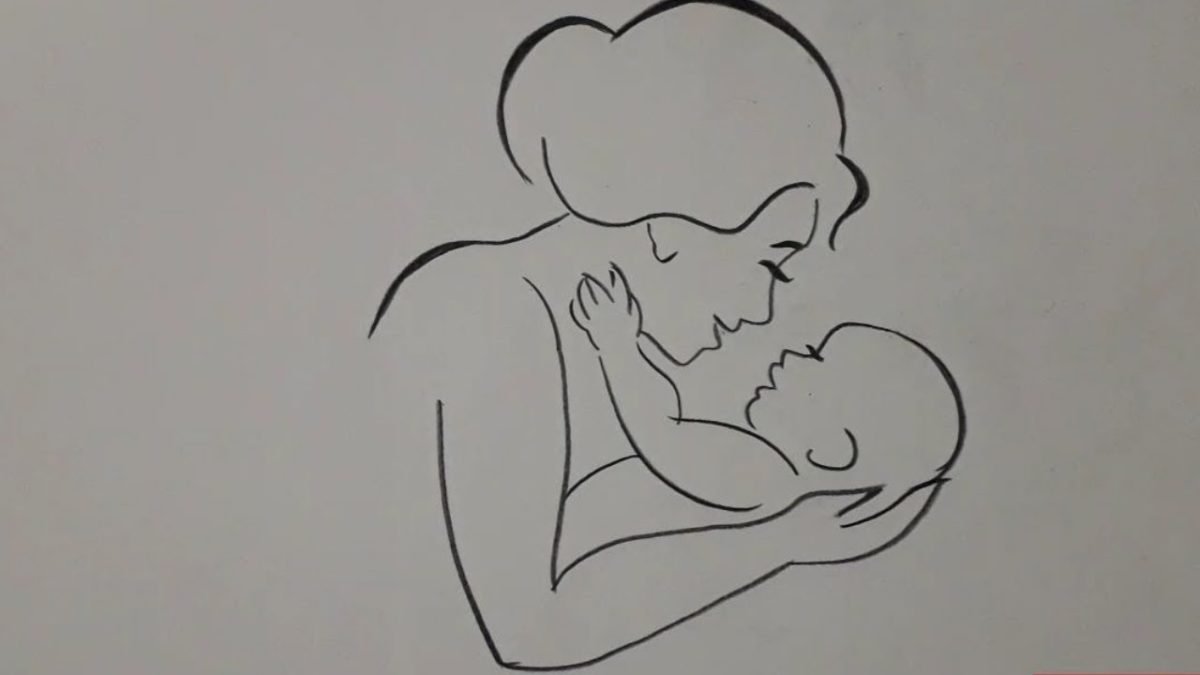 Мама и ребёнок рисунок для срисовки