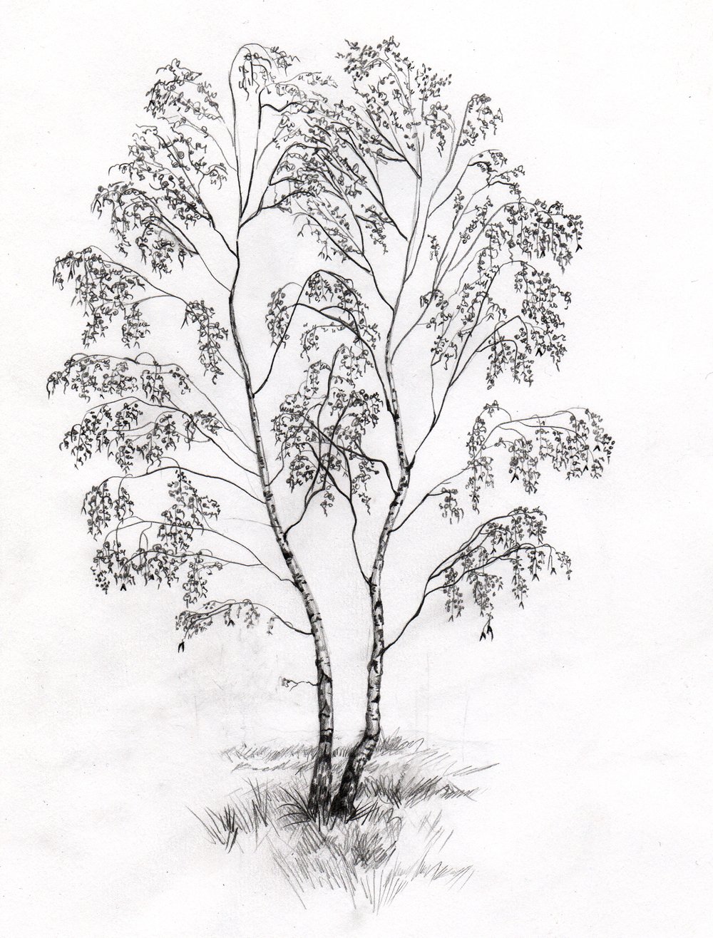 ![Нарисовать берёзу карандашом поэтапно для детей]()