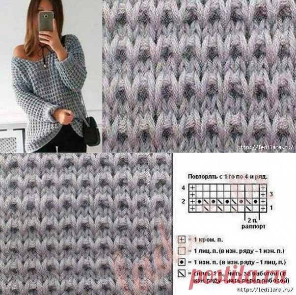 ![Вязание спицами узоры из лицевых и изнаночных со схемами]()