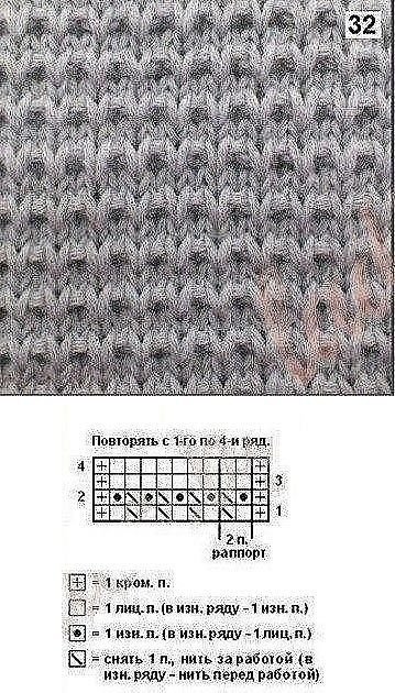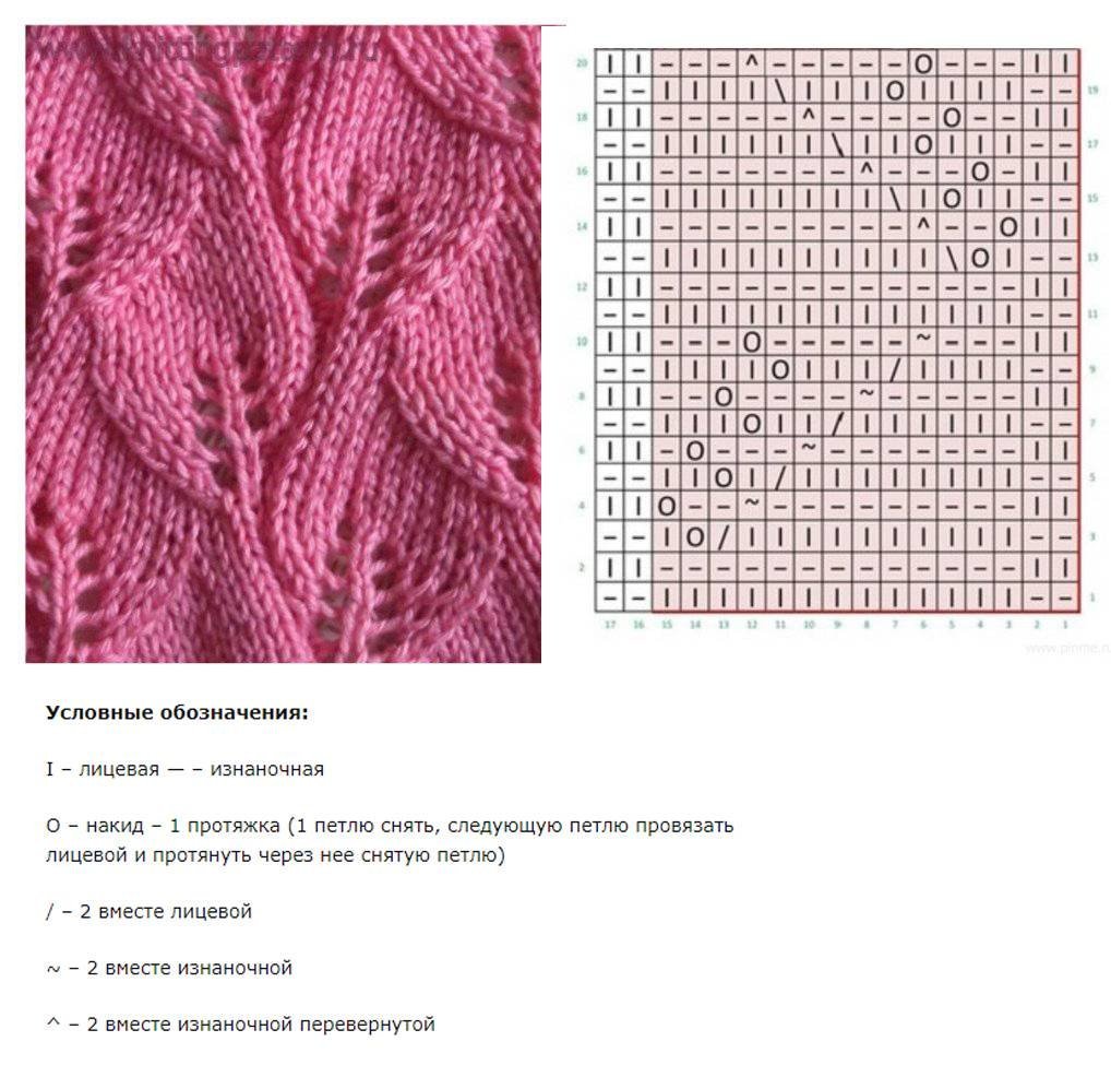 Вязание спицами узоры из лицевых и изнаночных со схемами
