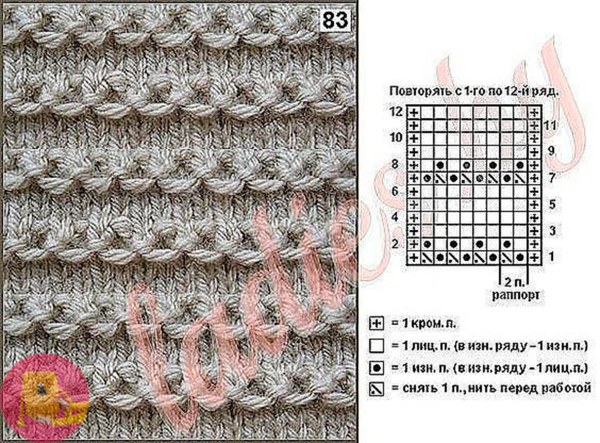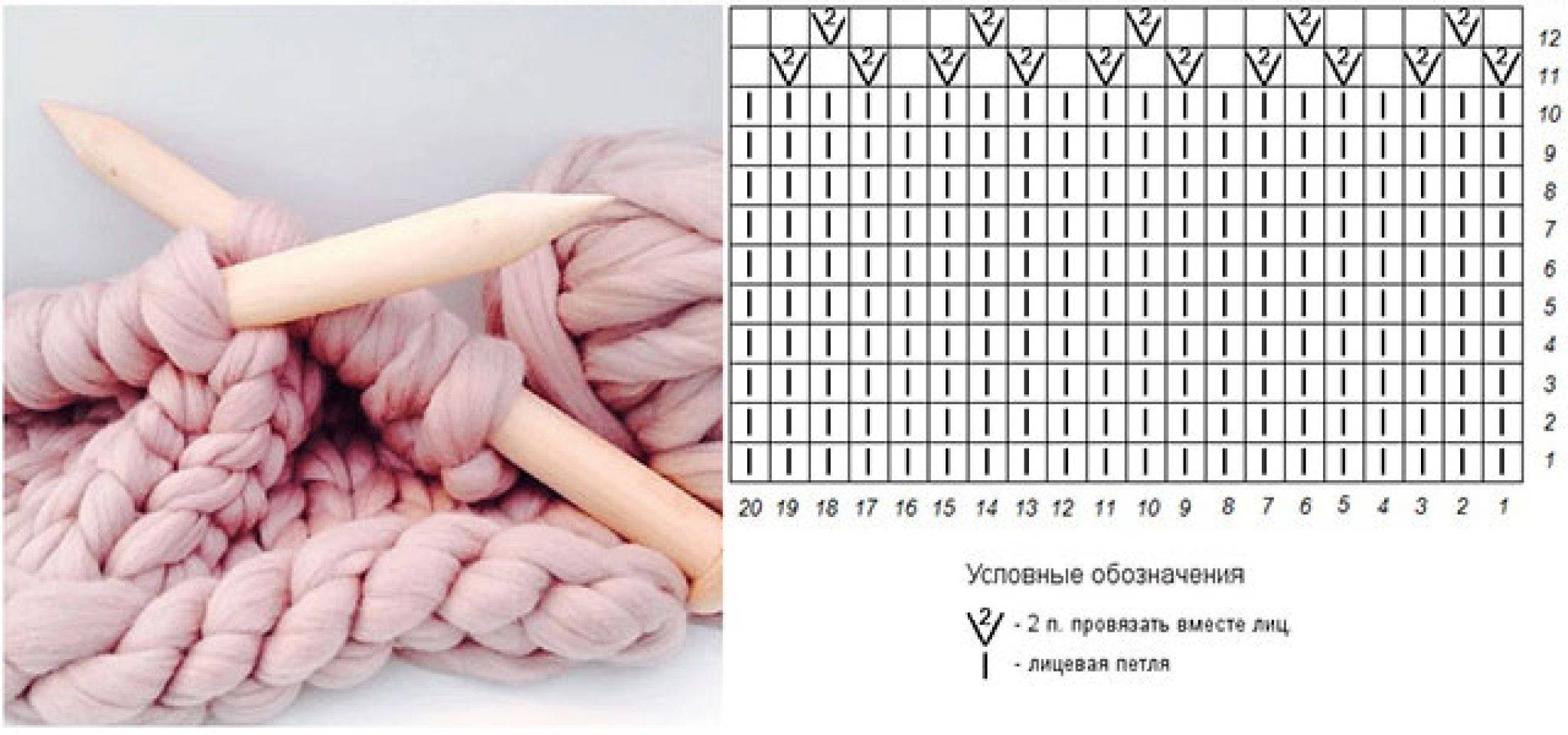 Узор спицами из толстой пряжи схема и описание