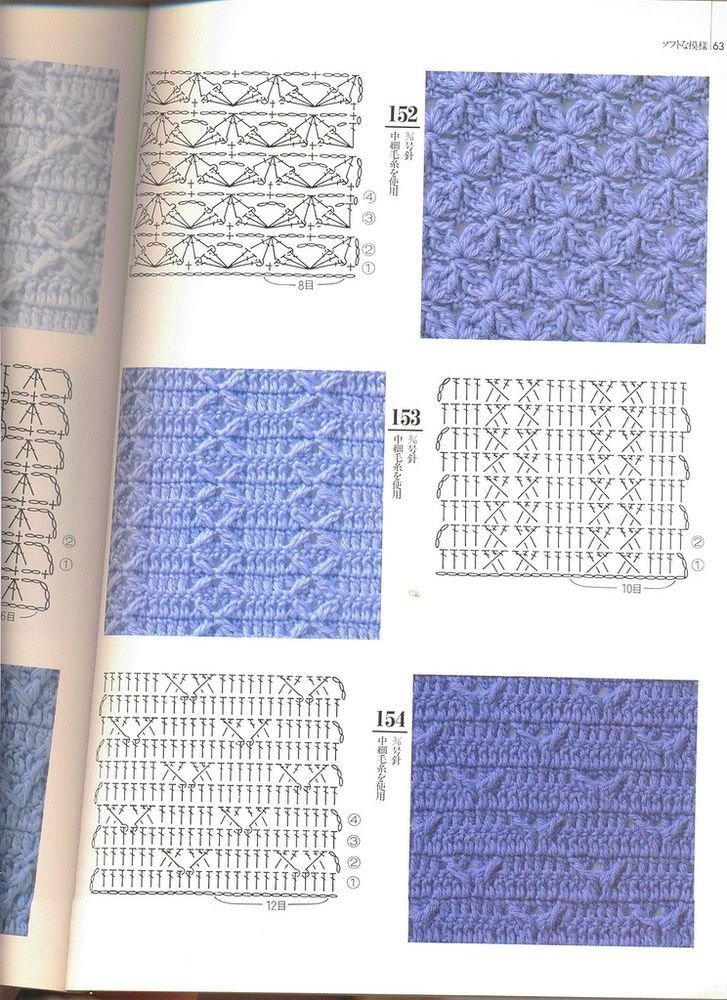 ![Узоры крючком для толстой пряжи со схемами]()