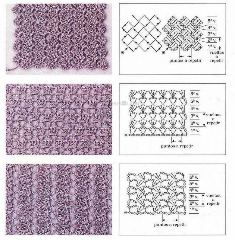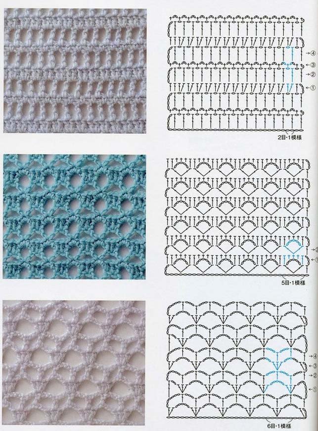 ![Узоры крючком со схемами простые мережки]()