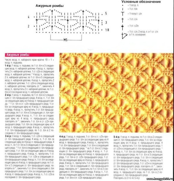 Узор ромбы спицами схемы вытянутыми петлями