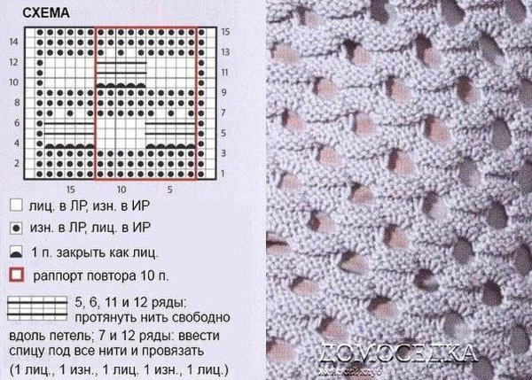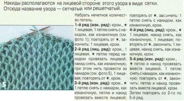 ![Ажурный сетчатый узор спицами схема]()