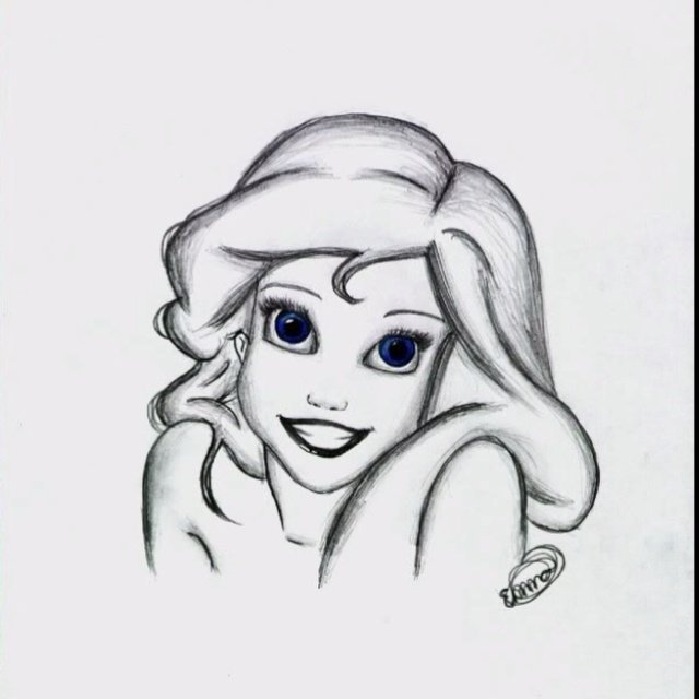 ![Принцессы Дисней для срисовки карандашом Ариэль]()