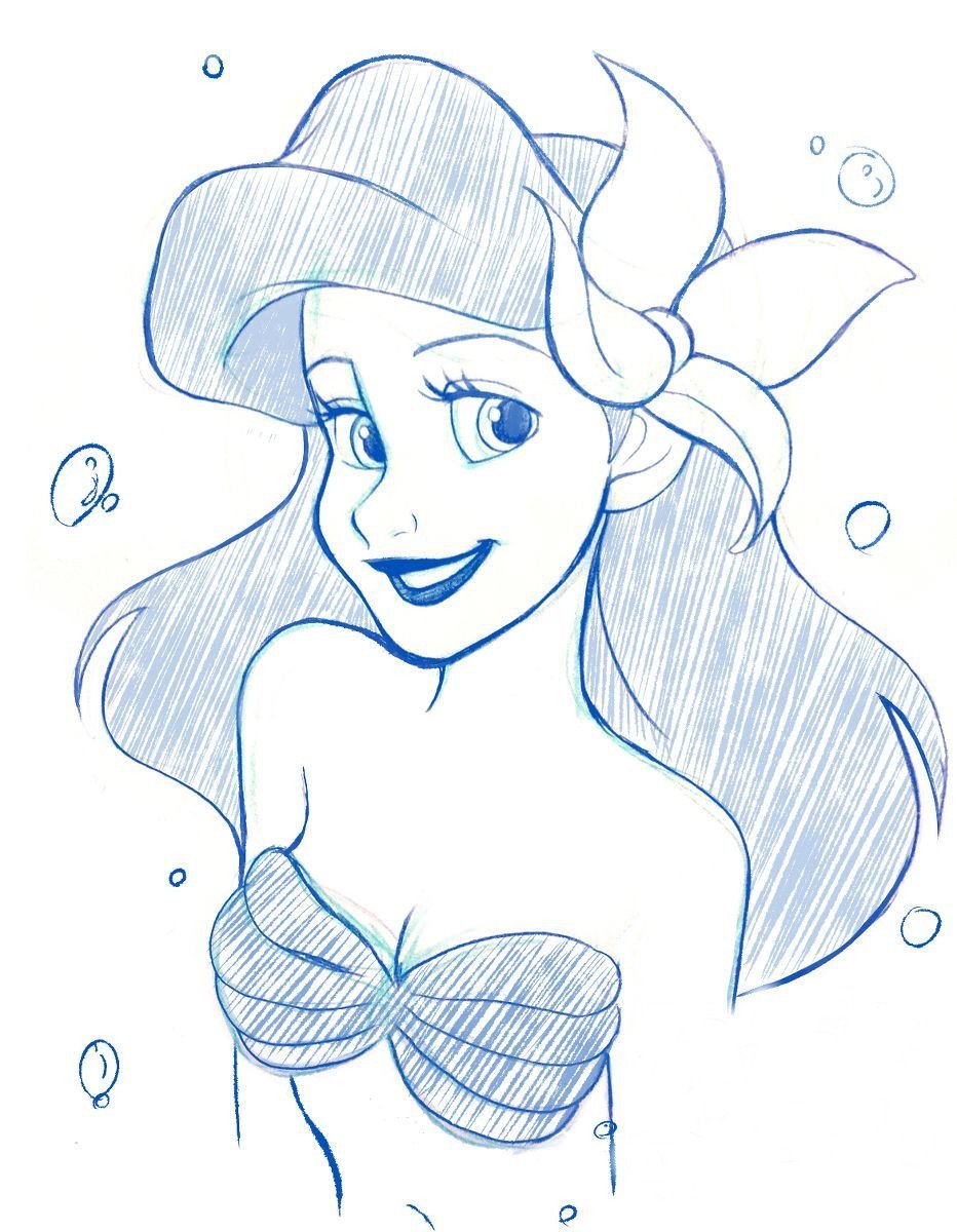 Принцессы Дисней для срисовки карандашом Ариэль