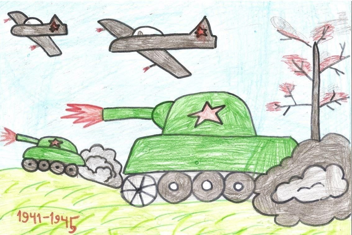 ![Детский рисунок на тему ВОВ]()