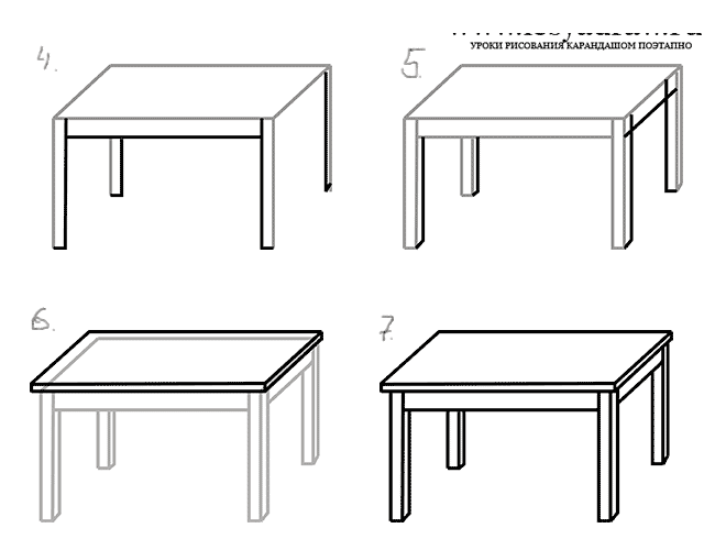 Поэтапное рисование стола