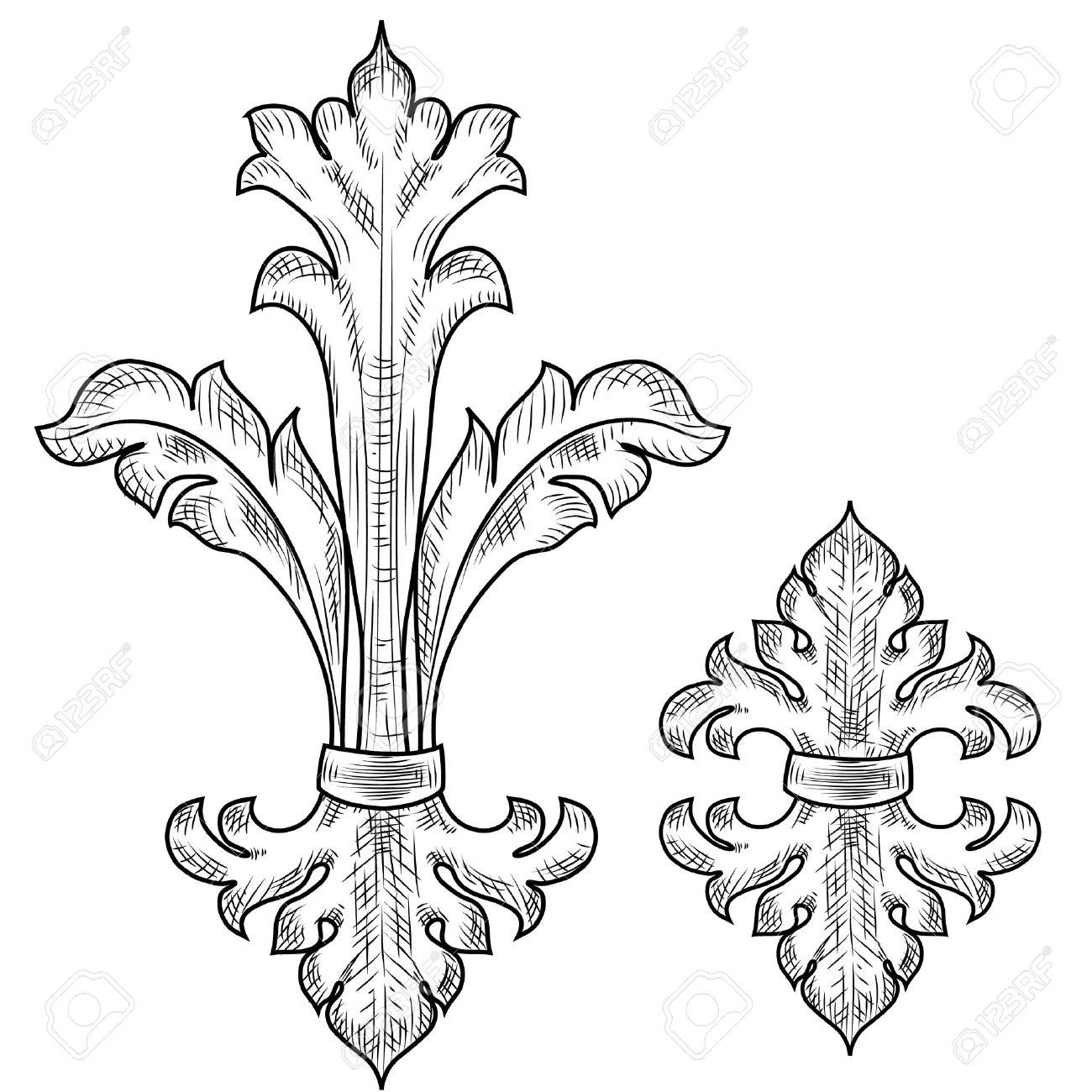 ![Элементы в стиле Барокко карандашом]()