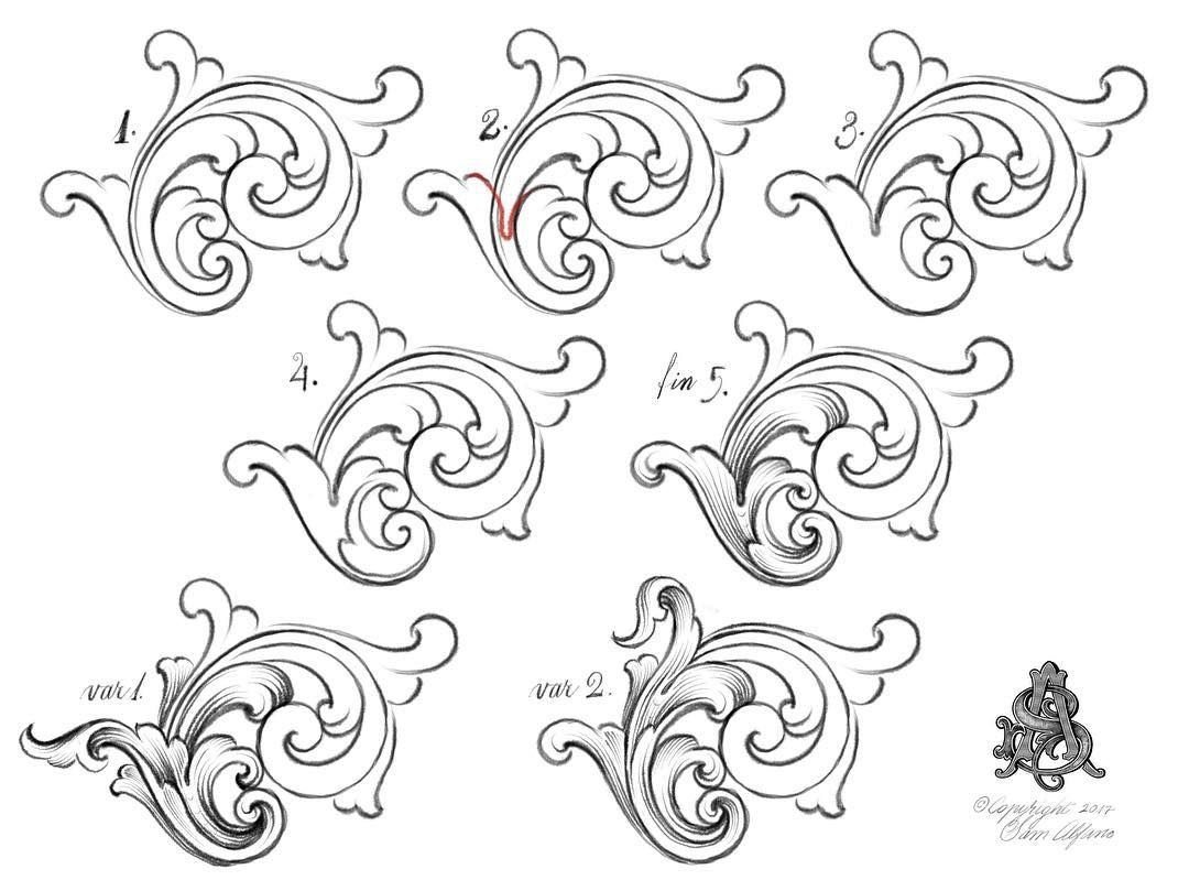 ![Орнамент в стиле Барокко карандашом]()