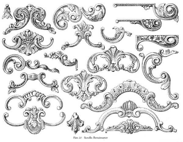 ![Орнаменты в стиле Барокко для резьбы]()