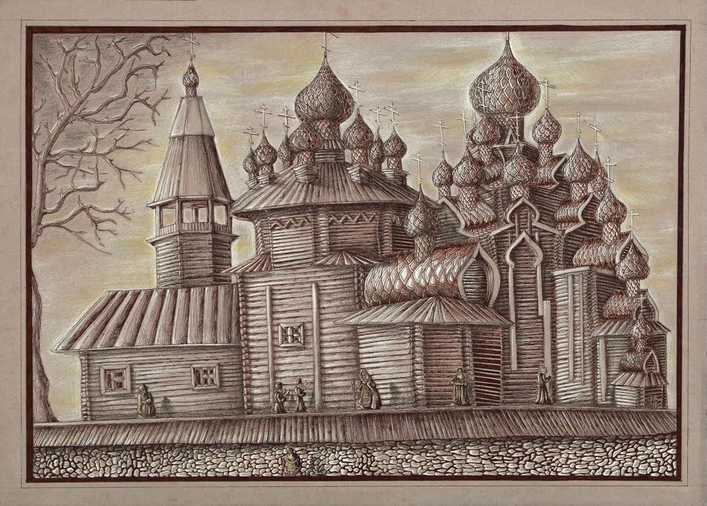 ![Деревянное зодчество Кижи рисунки]()