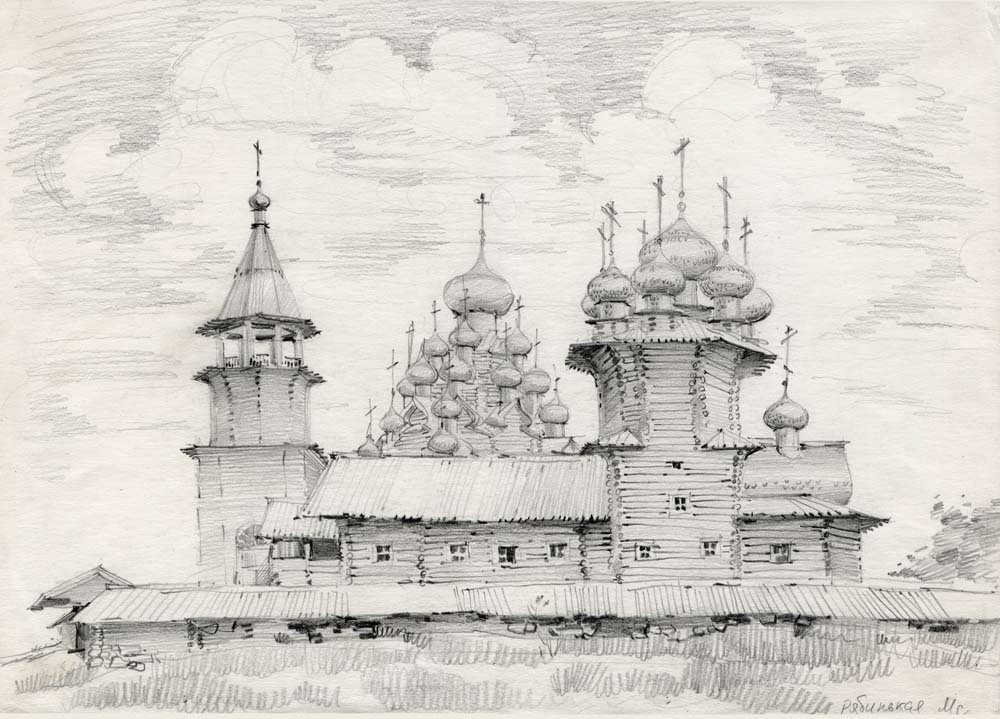 ![Кижи Преображенская Церковь зарисовка]()