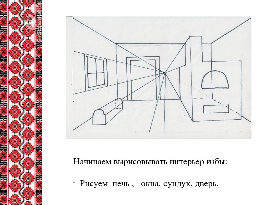 Рисование интерьера русской избы