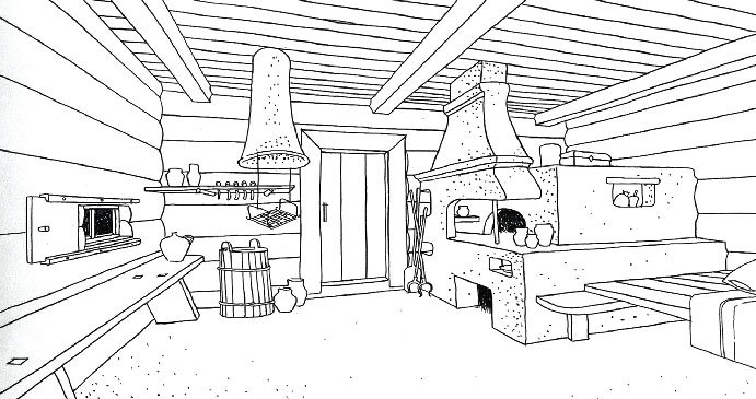 Интерьер древнерусской избы рисунки