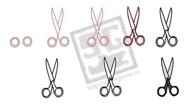 ![Как нарисовать ножницы поэтапно]()