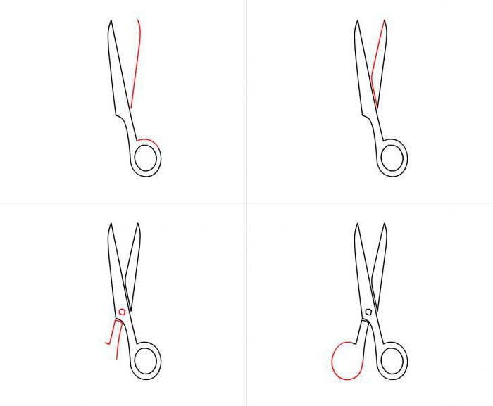 ![Поэтапное рисование ножниц]()