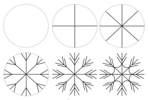 Снежинки карандашом