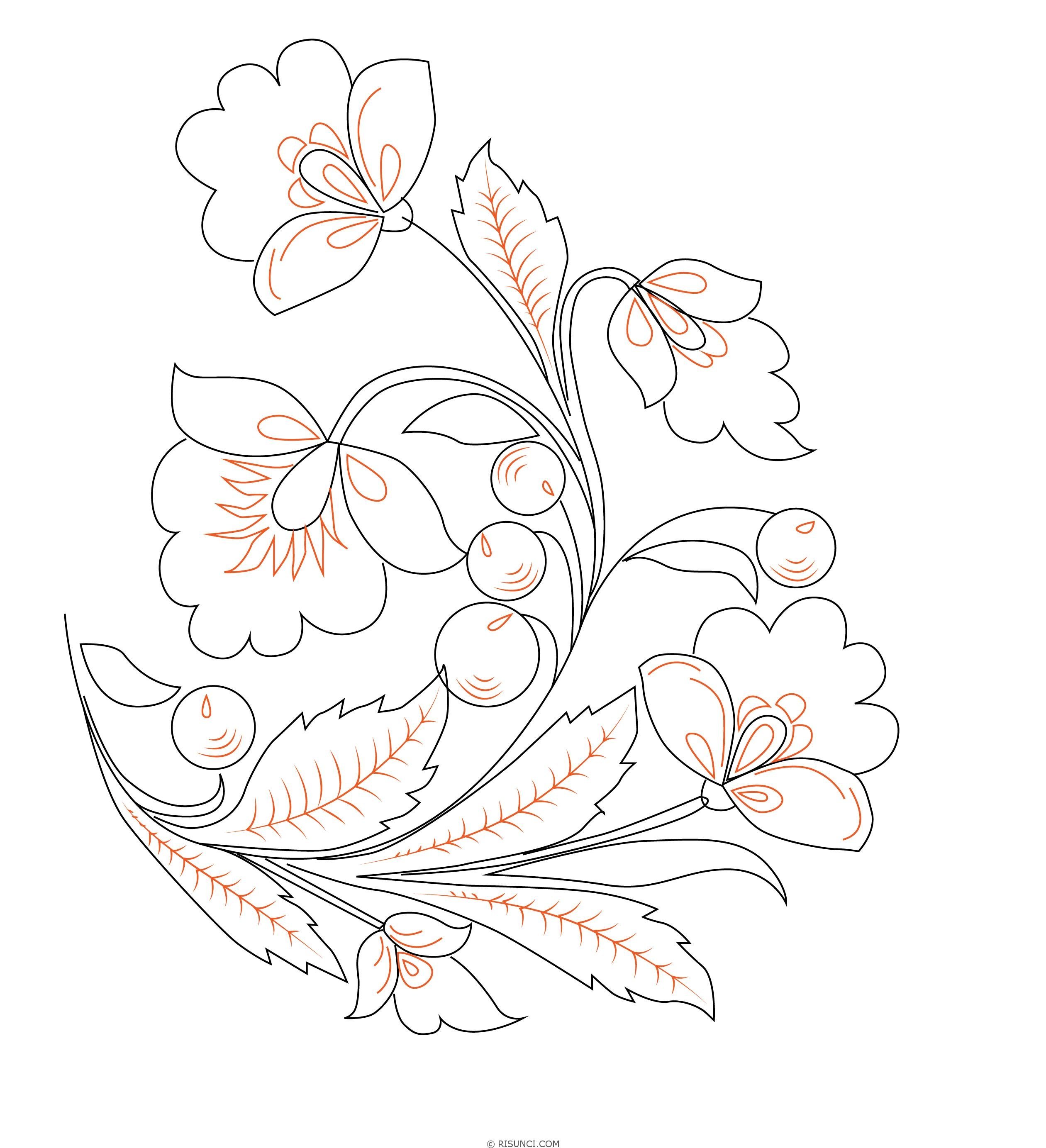 ![Жостовская роспись раскраска]()