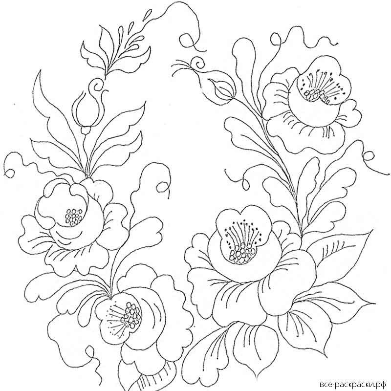 Городецкая роспись раскраска для детей