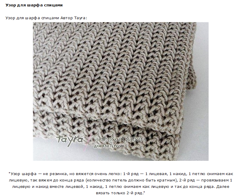 Узор для шарфа спицами