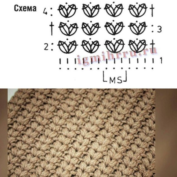 Узоры с пышными столбиками крючком схемы