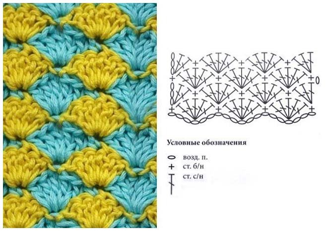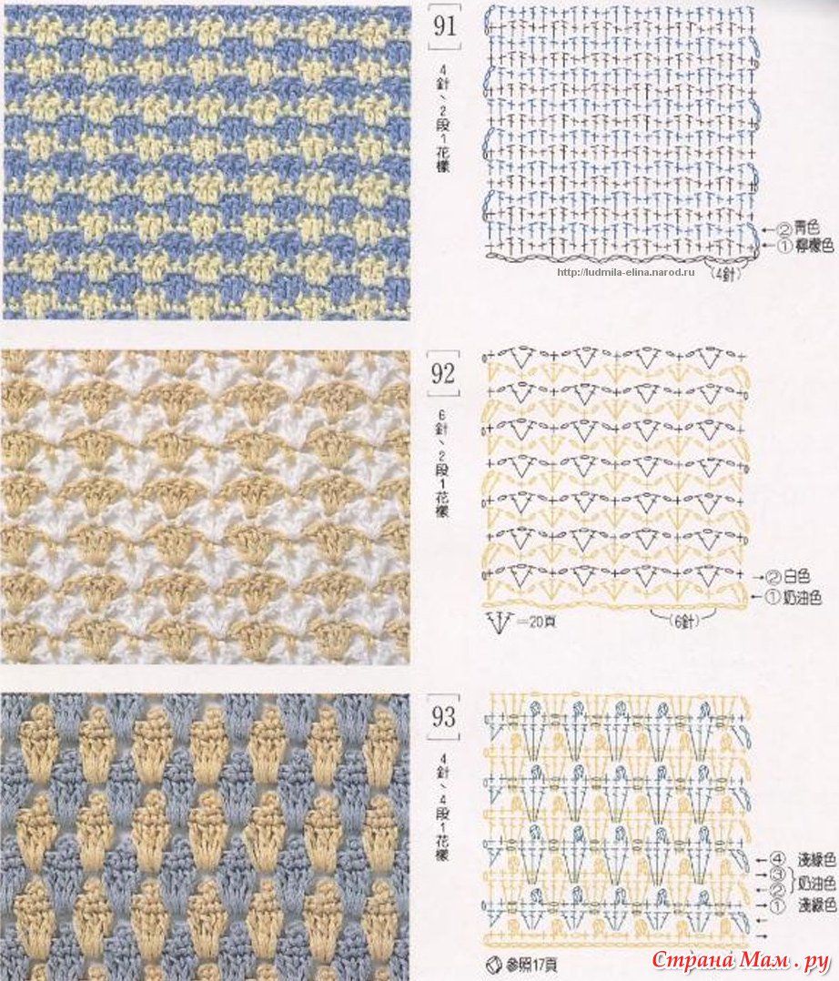 Вязание крючком двухцветных узоров схемы