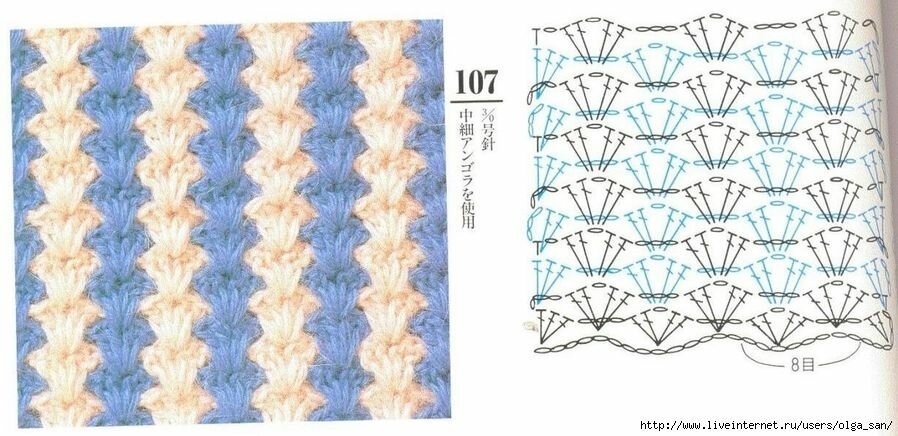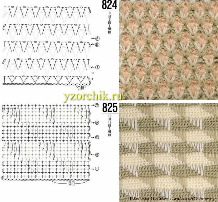 ![Вязание крючком двухцветных узоров схемы]()