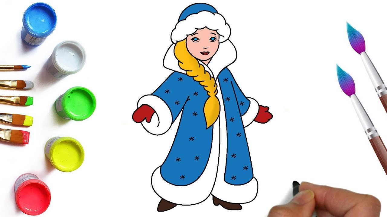 ![Как нарисовать снегурочку красками в средней группе поэтапно]()