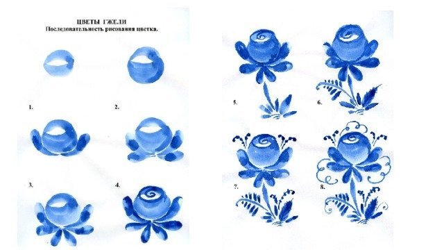 Этапы гжельской росписи для детей