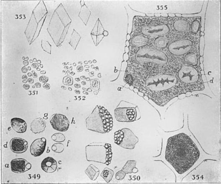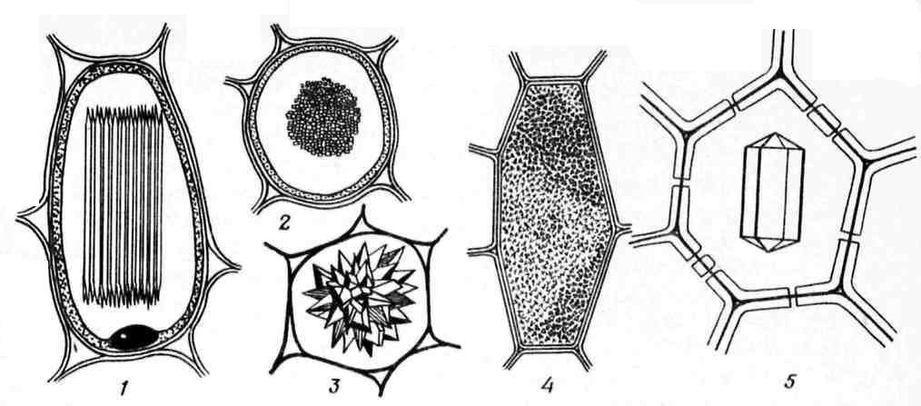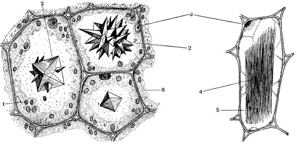 ![Кристаллы оксалата кальция в клетках черешка листа бегонии]()