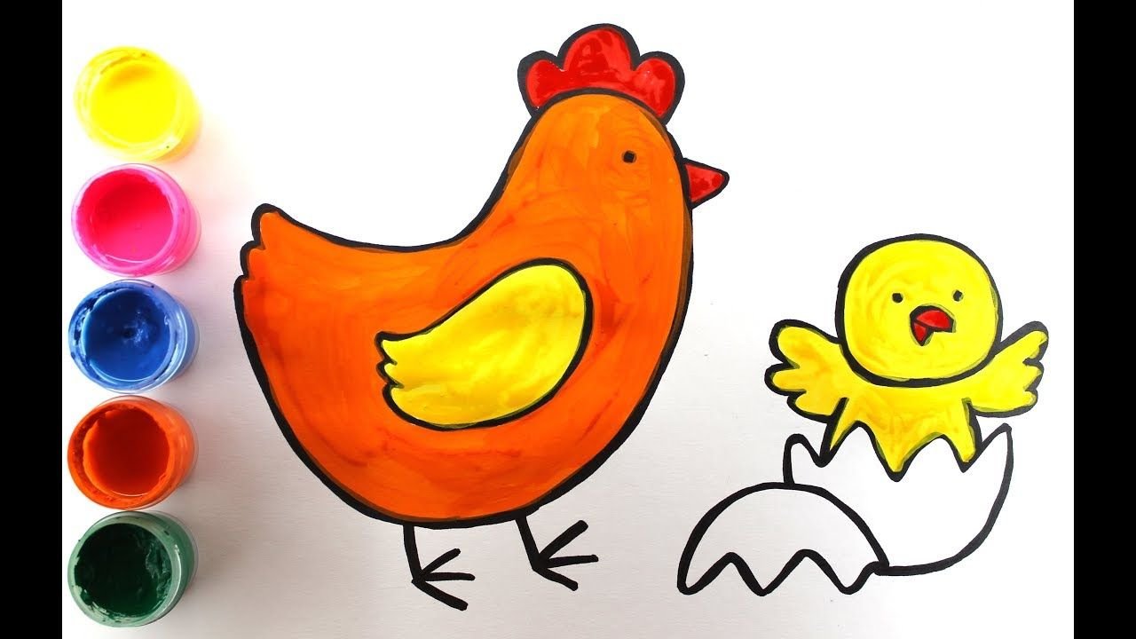 Курица красками для детей