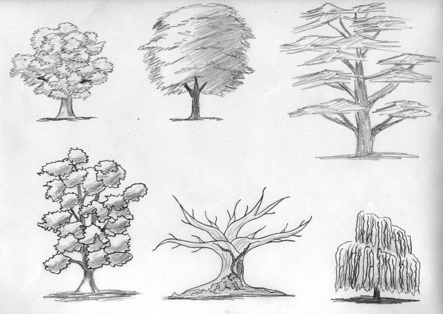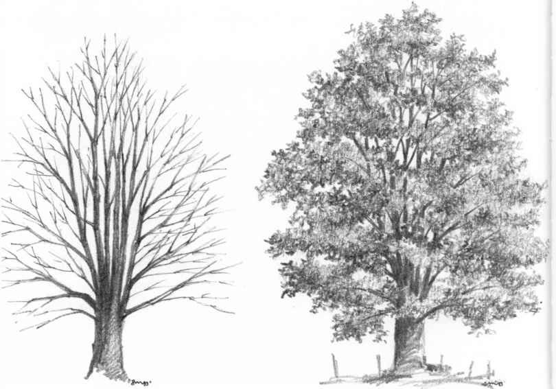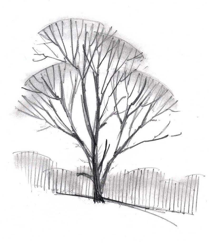 Зарисовки деревьев карандашом простые