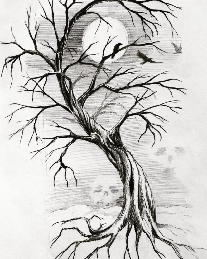 Дерево рисунок карандашом